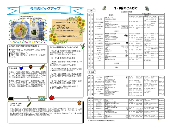 7・8月の食育だよりと献立