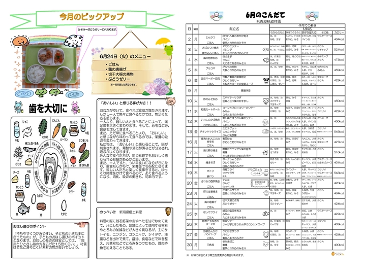 6月の食育だよりと献立