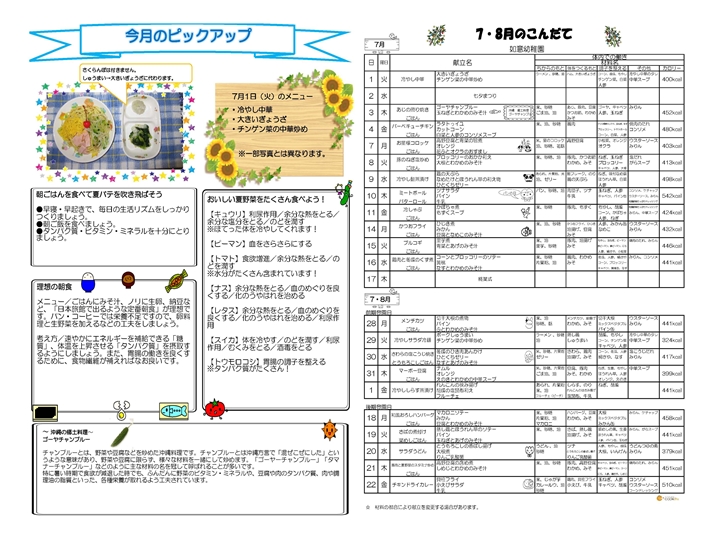 7・8月の食育だよりと献立